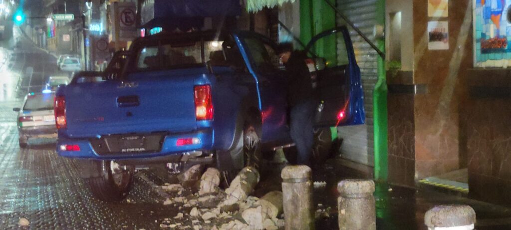 Esta madrugada se suscitaron dos accidentes en pleno centro de Xalapa, el primero ocurrió al rededor de las 2:30 horas en la calle Primo Verdad, cuando el conductor de una camioneta perdió el control y se impactó contra los bolardos de lado derecho, quedando arriba de la banqueta, no se reportaron lesionados.