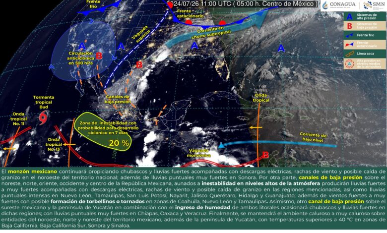 Pronóstico de lluvias para hoy 26 de julio de 2024: