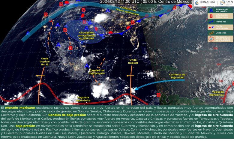 Pronóstico de lluvias para hoy 12 de agosto de 2024: