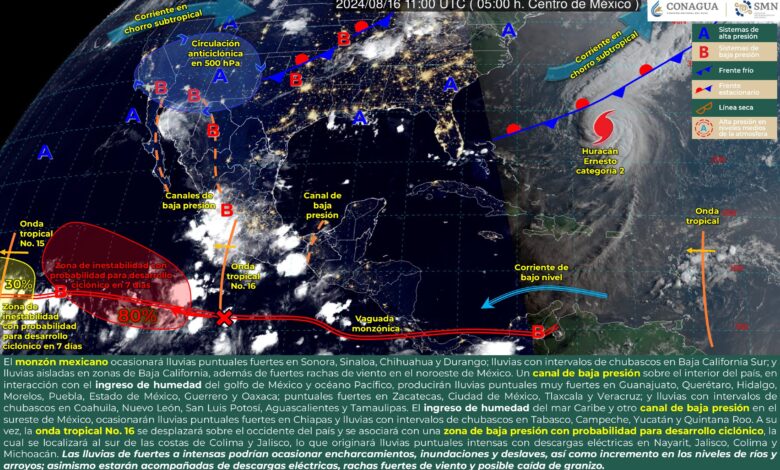 Pronóstico de lluvias para hoy 16 de agosto de 2024: