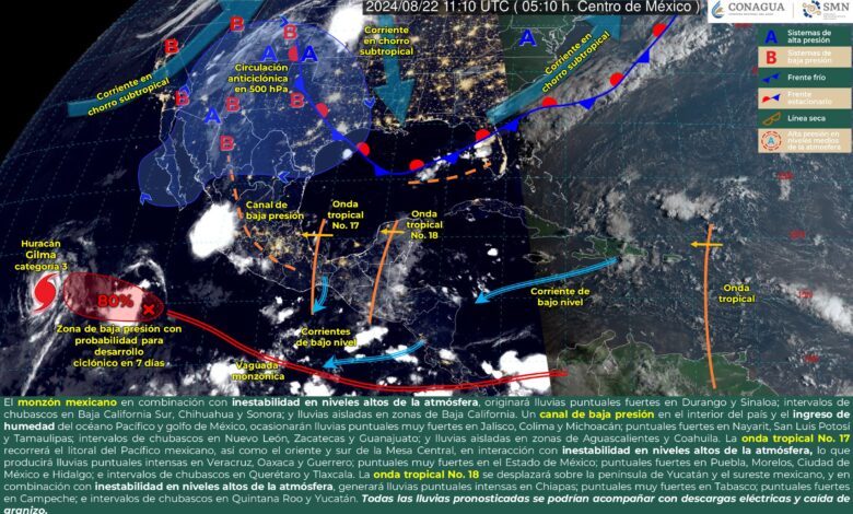 Pronóstico de lluvias para hoy 22 de agosto de 2024: