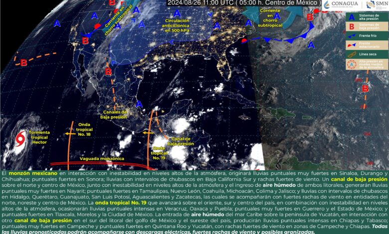 Pronóstico de lluvias para hoy lunes 26 de agosto de 2024: