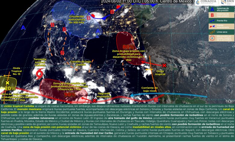 Pronóstico de lluvias para hoy 02 de agosto de 2024: