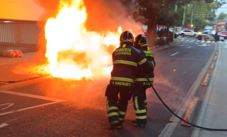 Se reporta incendio de camioneta en la colonia Álamos, alcaldía Benito Juárez