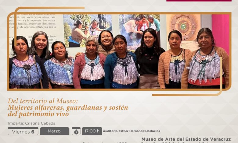 Xalapa, Ver., jueves 05 de marzo de 2026.- En el marco de la conmemoración del Día Internacional de la Mujer, la Secretaría de Cultura de Veracruz (SECVER) invita a la conferencia Del territorio al museo: mujeres alfareras, guardianas y sostén del patrimonio vivo, el viernes 06 de marzo a las 17:00 horas en el Museo de Arte del Estado de Veracruz (MAEV), en la ciudad de Orizaba.