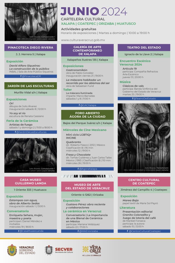 Redacción Xalapa.-La Secretaría de Cultura de Veracruz invitó al público en general a disfrutar de la oferta cultural diversa durante el mes de junio, integrada por exposiciones, conversatorios, talleres, música, teatro, literatura, cine y actividades de fomento a la lectura para todos los públicos, que tendrán lugar en su red de recintos culturales de Xalapa, Coatepec, Orizaba y Huatusco.