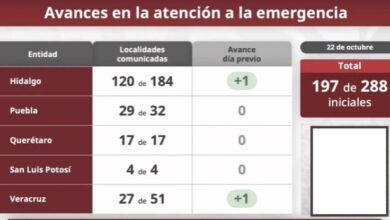 En el estado de Veracruz, las labores de limpieza reportan un avance significativo, con Poza Rica al 83%, Álamo al 80%, El Higo al 75% y Tempoal al 93%, por lo que se prevé concluir esta fase en los próximos días para dar inicio a la etapa de reconstrucción.