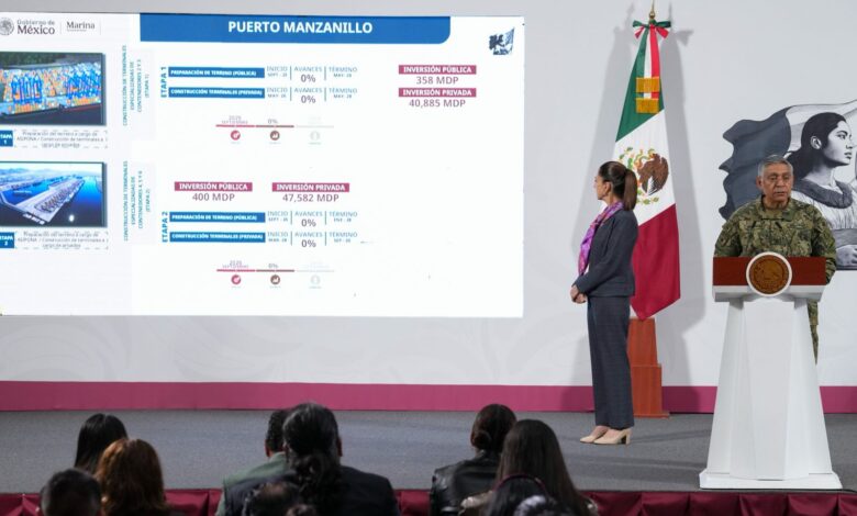 “De la infraestructura complementaria que se edificará para la ampliación natural del puerto en la zona norte se hará una inversión de 7,750 millones de pesos, para la Línea de Transmisión en alta tensión y subestación eléctrica se hará una inversión de 780 millones de pesos, además de la UNAPROP con una inversión de 101 millones de pesos”.