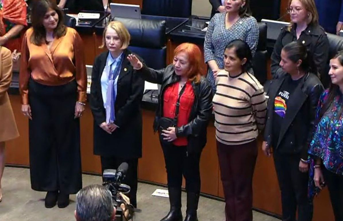 María Martina Kantún Can, senadora de Morena, forcejó con algunas senadoras del PAN para quitar la mampara.