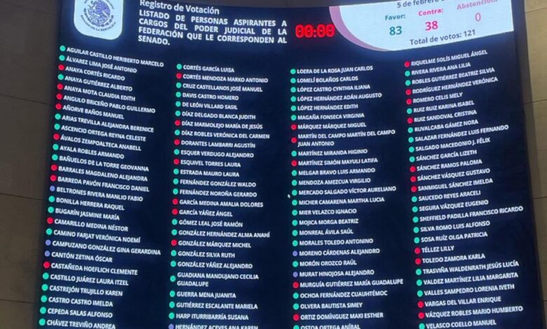 Carlos Guzmán | Corresponsal CDMX.- El Senado de la República ratificó esta noche, con 83 votos a favor y 38 en contra, la lista de 870 aspirantes seleccionados por el Comité de Evaluación del Poder Legislativo para participar en la elección de jueces, magistrados y ministros programada para el 1 de junio de 2025.