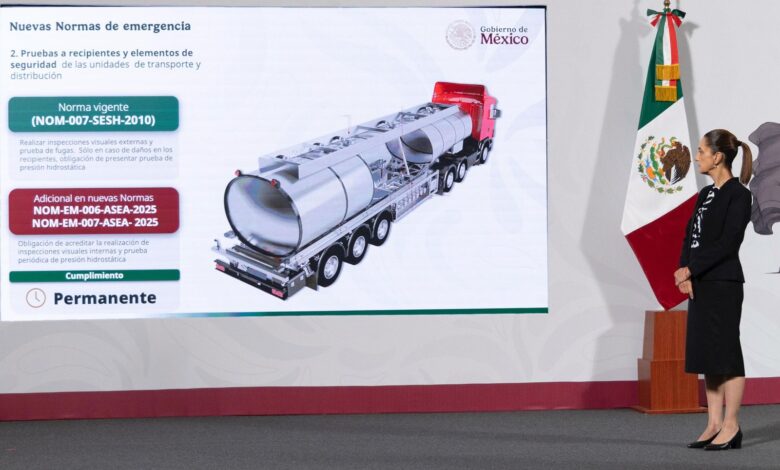 La jefa del Estado Mexicano, indicó que las nuevas regulaciones, elaboradas por la Secretaría de Energía, la Secretaría de Infraestructura, Comunicaciones y Transportes, la Agencia de Seguridad, Energía y Ambiente (ASEA) y la Comisión Nacional de Energía, establecen controles más estrictos sobre el estado de las pipas y las prácticas de operación.