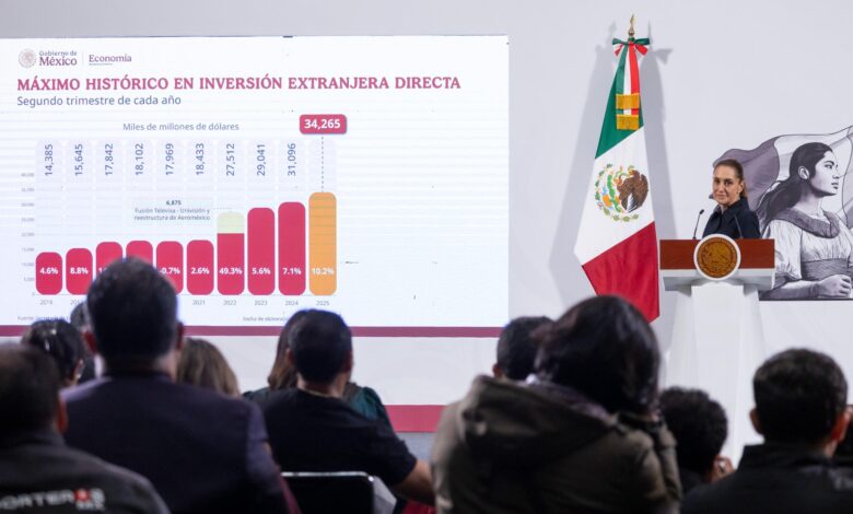 Sheinbaum celebra récord en inversión extranjera en lo que va de 2025