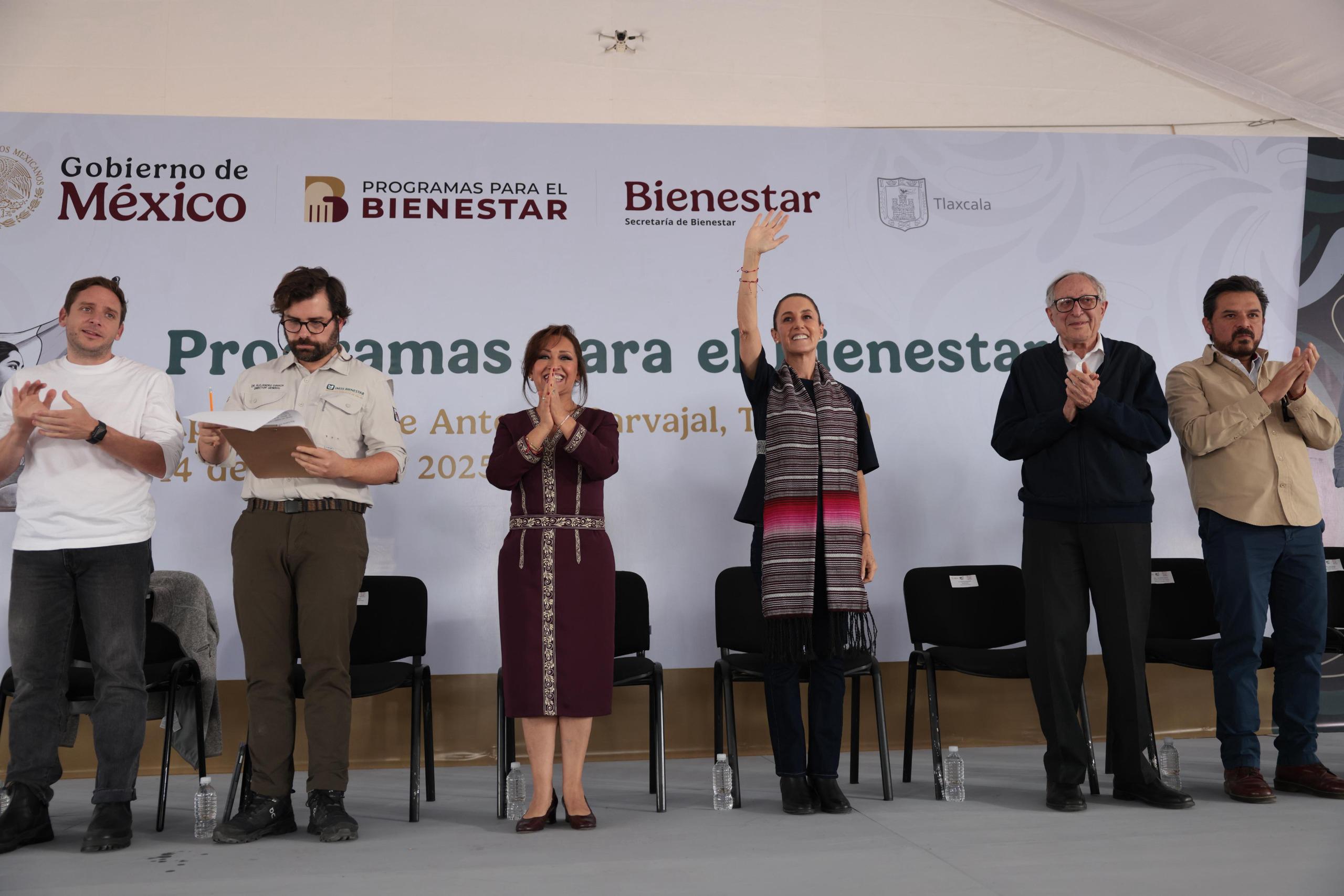 En la localidad de Apetatitlán, Tlaxcala, donde realizó una evaluación de la aplicación de los programas del Bienestar en la entidad, la jefa del Estado Mexicano hizo el anuncio que el viernes en su Mañanera del Pueblo dejó “a confirmarse con una llamada”.