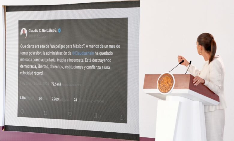 A renglón seguido, Sheinbaum Pardo bautizó como un “junior tóxico”, a Claudio X González, con alma «autoritaria, inepta e insensata. Está destruyendo democracia, libertad, derechos, instituciones», la presidenta indicó que este personaje es el jefe del lo que la izquierda mexicana llama ‘PRIAN’ (la alianza entre el Partido Acción Nacional y el Partido Revolucionario Institucional).