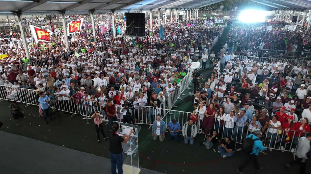 “Aquí hay más de 20 mil ciudadanos con interés y libres que habrán de votar por la primera presidenta mujer de la historia de México al tiempo de pedir que cada uno de los concurrentes lleve a 10 más el 2 de junio para votar por la coalición Juntos Seguimos Haciendo Historia.