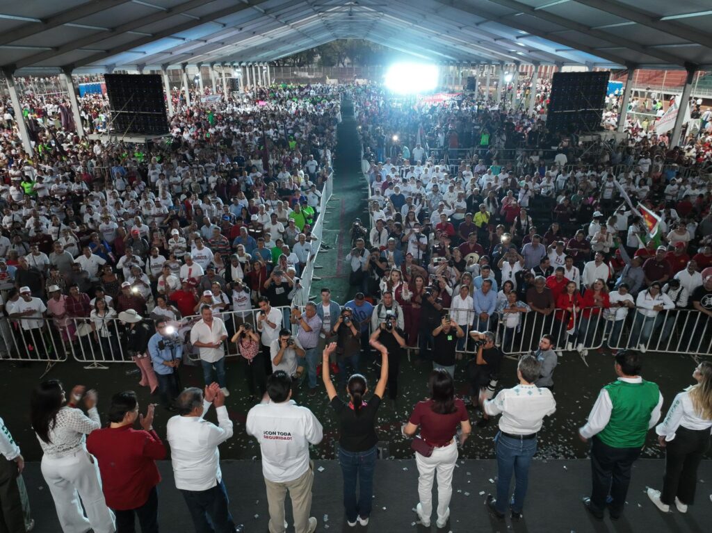 Carlos Guzmán | Corresponsal CDMX.- Con la asistencia del líder nacional de Morena, Mario Delgado, así como el líder y aspirante a reelegirse como senador por el Partido Verde y coordinador de alianzas, Manuel Velasco, esta tarde la candidata de la coalición Juntos Seguimos Haciendo Historia, Claudia Sheinbaum Pardo, efectuó un mitin – cierre de campaña regional en Naucalpan, estado de México.