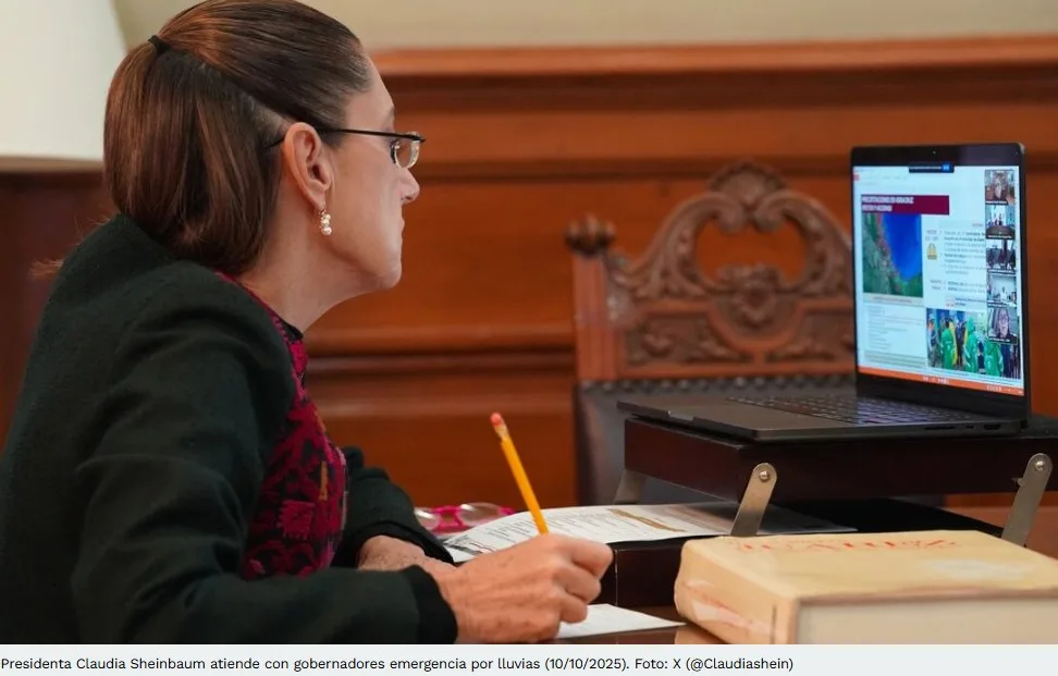 La presidenta Claudia Sheinbaum sostuvo este viernes una reunión virtual con gobernadores de los estados afectados por las lluvias presentadas en las últimas horas; también participaron miembros del gabinete; esto, para brindar atención a la población damnificada.