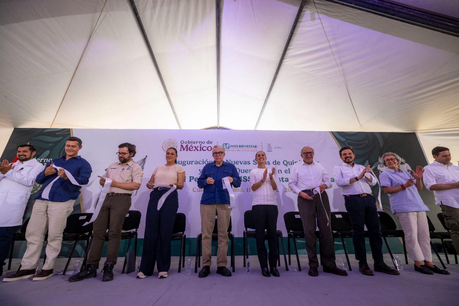 Carlos Guzmán | Enviado, Culiacán.- En su tercera vista a Sinaloa, la presidenta de México, Claudia Sheinbaum Pardo, acompañada por el gobernador Rubén Rocha Moya, inauguró las nuevas salas de quirófanos y un área para la atención de niños quemados en el Hospital Pediátrico de Sinaloa, nosocomio que fue totalmente sustituido, con una inversión de 508 millones de pesos, y que ahora brinda nuevos servicios, como un aérea de hemodiálisis pediátrica para niños con insuficiencia renal crónica.