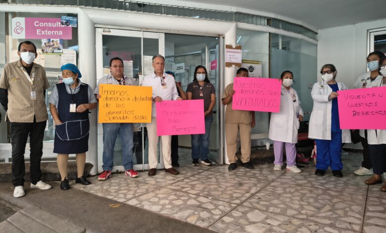 Ariadna García/Xalapa, Ver. Con pancartas en mano, médicos internos, residentes y personal de jornada acumulada del Hospital Regional “Dr. Luis F. Nachón” protestaron este sábado para denunciar que dejaron de recibir alimentos.