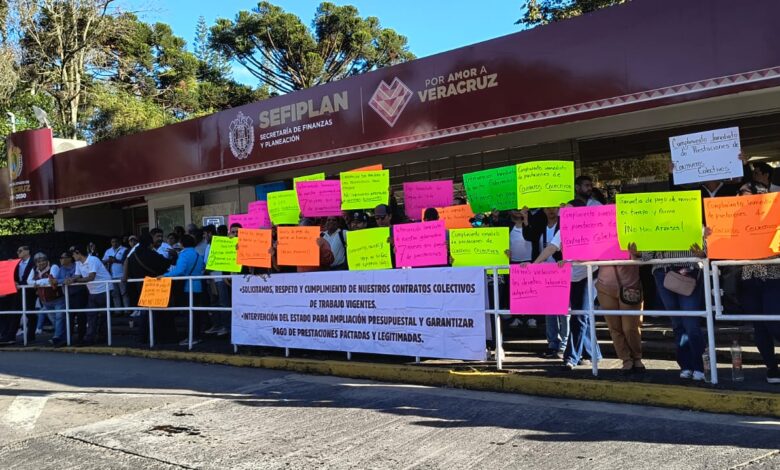 Juan David Castilla/Xalapa. Empleados de diversos institutos tecnológicos del estado de Veracruz protestaron y tomaron las oficinas de la Secretaría de Finanzas y Planeación (Sefiplan) en Xalapa para denunciar atrasos en el pago de la nómina y prestaciones.