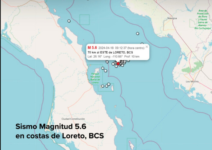 CIUDAD DE MÉXICO.— La mañana de este jueves 18 de abril se registró un sismo al norte de Baja California Sur; el Servicio Sismológico Nacional (SSN) informó que la magnitud fue de 5.6 grados; previamente se había cifrado en 4.2.