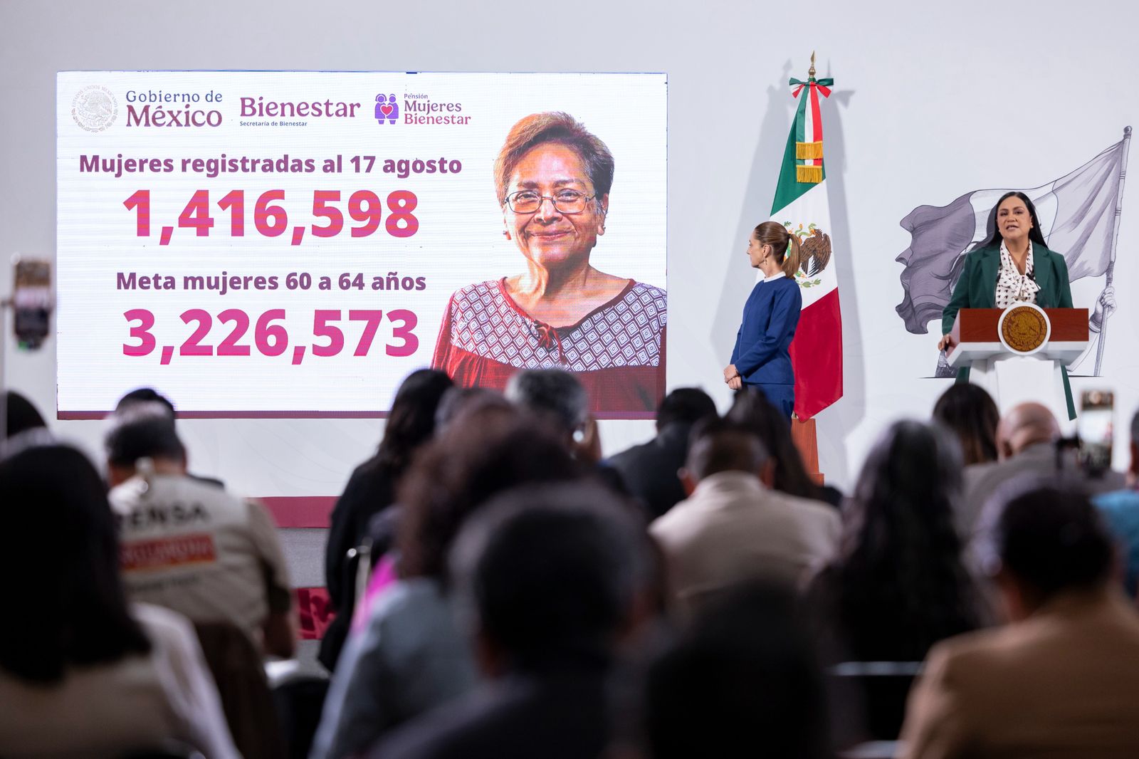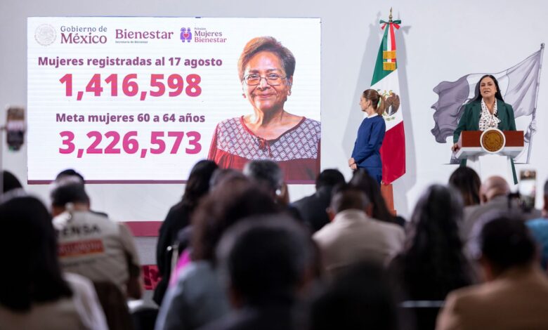 Montiel señaló que la meta de agosto es alcanzar los 2.2 millones de registros, aunque se espera que al cierre del mes se llegue a 3.2 millones de beneficiarias, lo que significará haber cubierto el universo total de mujeres en ese rango de edad.