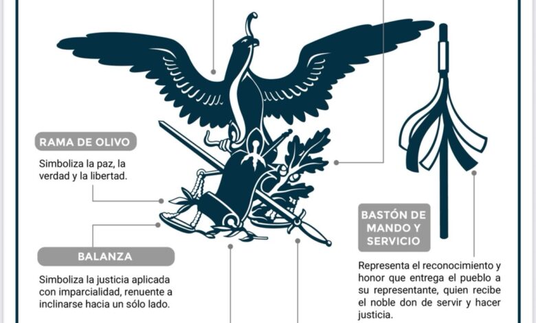 El cambio más relevante en el logotipo es la incorporación del bastón de mando, símbolo cultural, político y espiritual de los pueblos originarios. Este elemento representa el reconocimiento a la autoridad que asume la responsabilidad de servir y hacer justicia, consolidando un vínculo con las raíces y tradiciones de México.