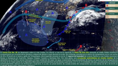Xalapa. La masa de aire que impulsó al sistema frontal No. 36 modificará sus características térmicas, favoreciendo el incremento gradual de la temperatura diurna en gran parte de México, así como evento de «surada» en Tamaulipas y Veracruz.