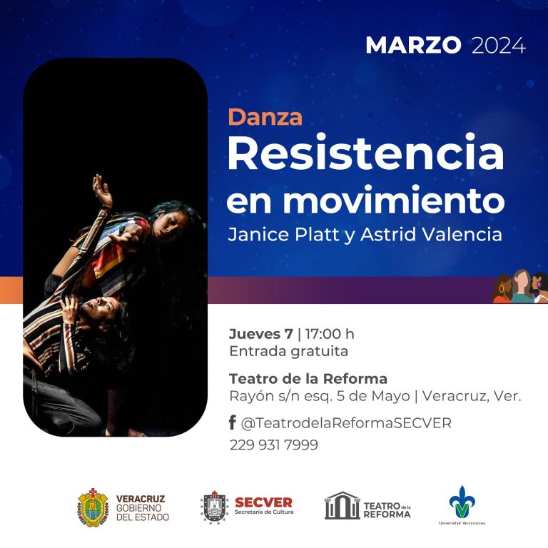 Redacción Xalapa.-El Teatro de la Reforma de Veracruz, invitó al público en general a la función de danza contemporánea «Resistencia en Movimiento», que se llevará a cabo con motivo del Día Internacional de las Mujeres, el jueves 7 de marzo a las 17:00 horas, en la sala principal del Teatro con entrada es gratuita.