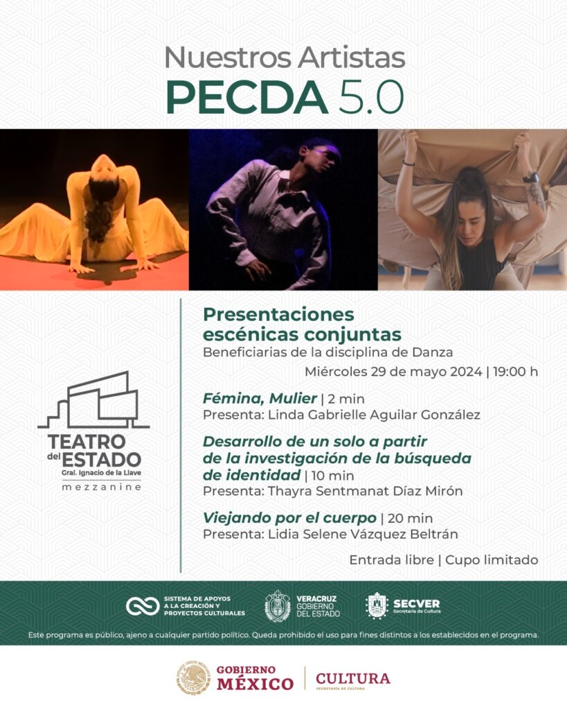 Todas ellas creadas por artistas escénicas beneficiadas por el programa Pecda Veracruz y que el próximo miércoles 29 de mayo a las 19:00 horas en el Teatro del Estado «Gral. Ignacio de la Llave» en la sala Mezzanine.