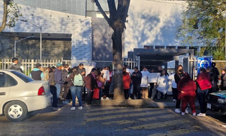 “No ha llegado nuestro pago quincenal que tenía que haber llegado el día de ayer, además nos estamos manifestando porque no contamos con papelería, no tenemos hojas, no tenemos folders; a nuestros compañeros de limpieza tampoco se les ha pagado una quincena completa, están trabajando bajo presión”.