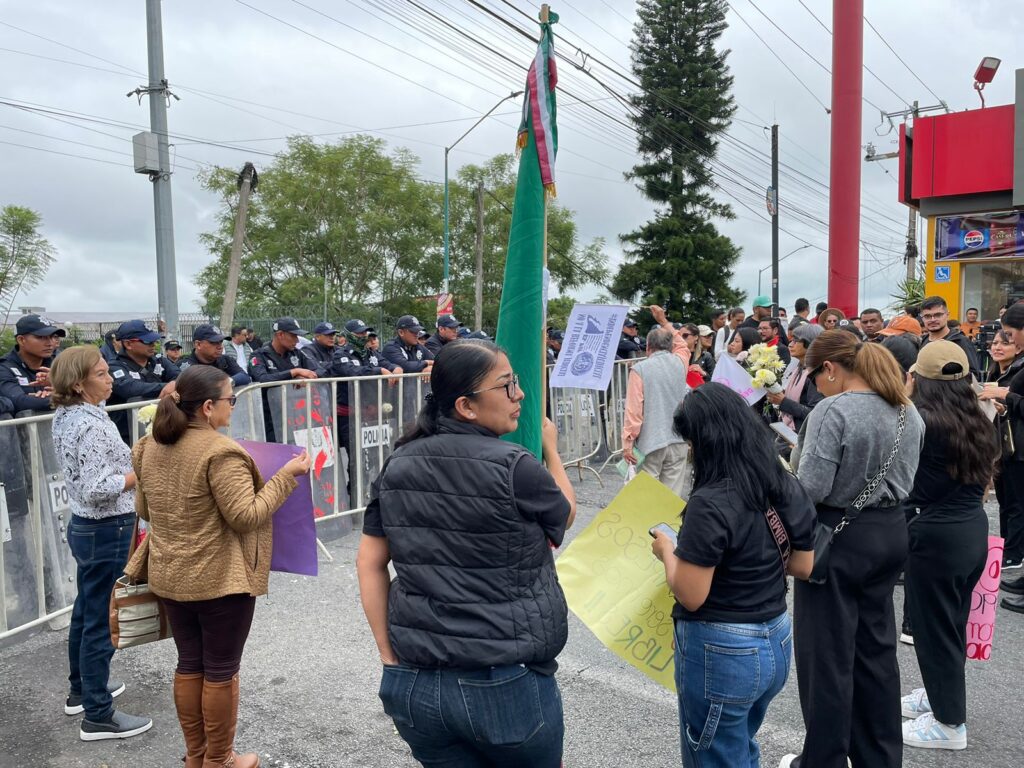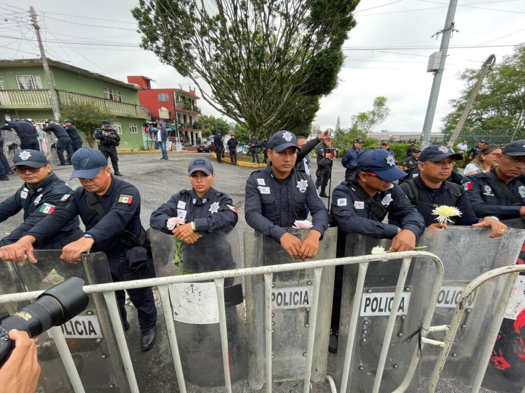 Los empleados del Poder Judicial se plantaron frente a las vallas metálicas, sobre la avenida Encanto, donde se localiza la entrada principal al recinto legislativo. Las personas regalaron flores blancas a los elementos de seguridad.