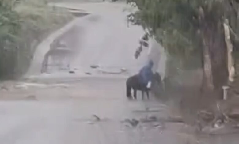A través de redes sociales, se difundió un video que captó el momento exacto del accidente. En las imágenes se observa al jinete intentando cruzar el arroyo en medio de una lluvia intensa. A pesar de intentar avanzar por los extremos de la corriente, la fuerza del agua terminó por vencer al equino y arrastrar a ambos río abajo ante la mirada de quienes presenciaron la escena.