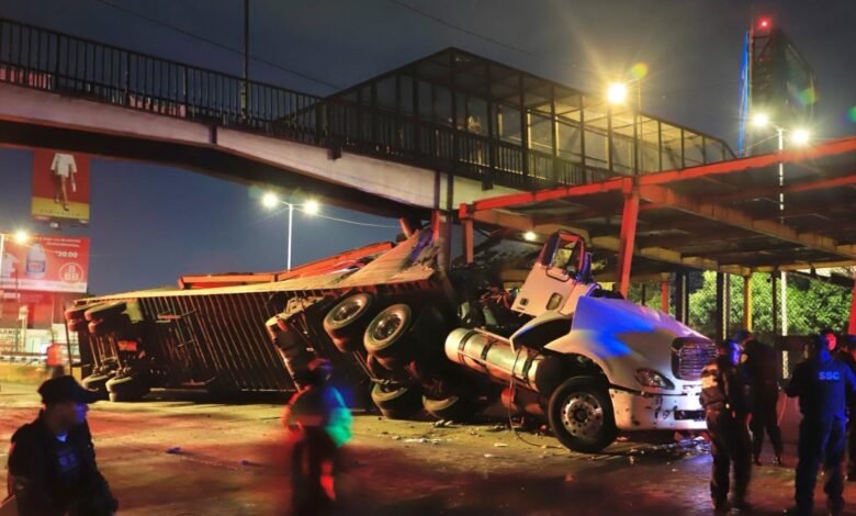 Tráiler vuelca en Circuito Interior y choca contra malla del Metro
