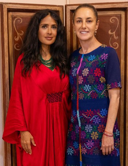 Sheinbaum elogió la trayectoria internacional de Salma Hayek, su liderazgo en la industria, y su compromiso con México y con la defensa de los paisanos en el extranjero.