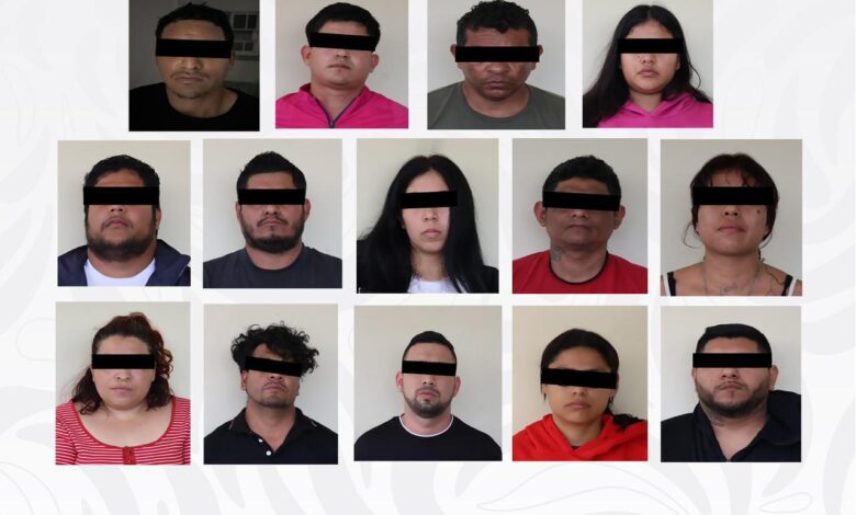 Como resultado de un despliegue operativo coordinado y simultáneo, se realizó la detención de nueve hombres y cinco mujeres, así como el aseguramiento de cinco armas largas, cuatro armas cortas, seis granadas, 19 cargadores, 544 cartuchos útiles, nueve chalecos balísticos, 10 vehículos, 16 motocicletas y diversas dosis de droga. Asimismo, en el lugar se liberó a una persona que se encontraba privada de la libertad, a quien se le brindó auxilio inmediato.