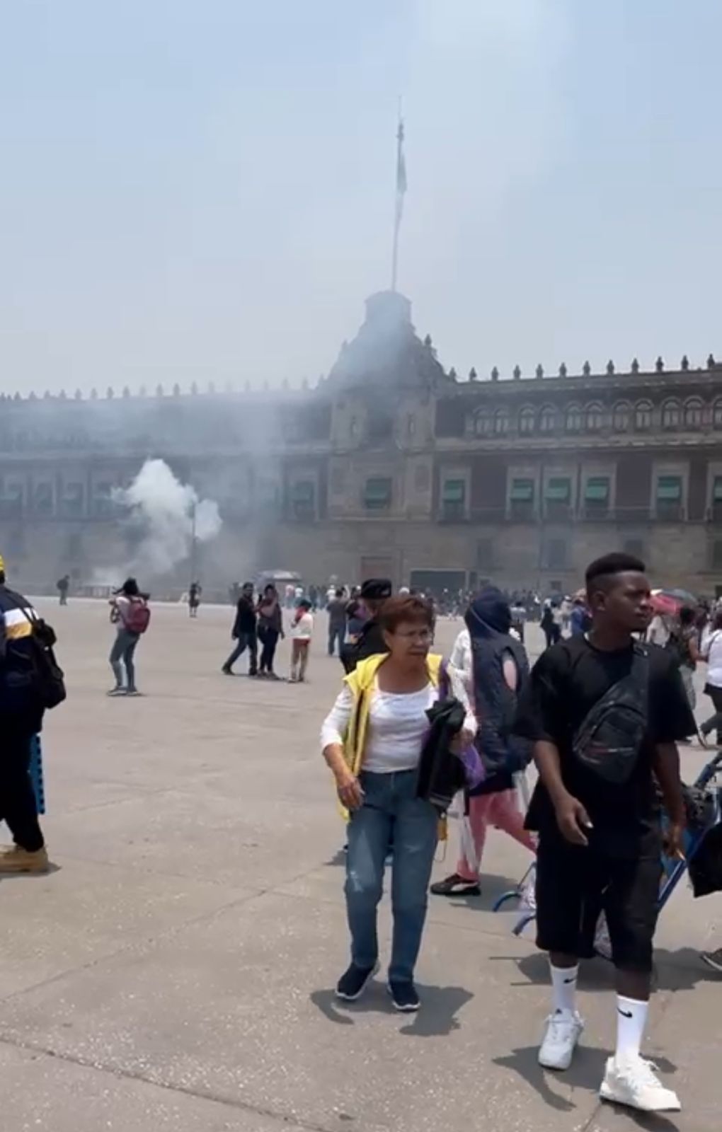Tras liberación de militares, normalistas de Ayotzinapa atacan con cohetones fachada de Palacio Nacional