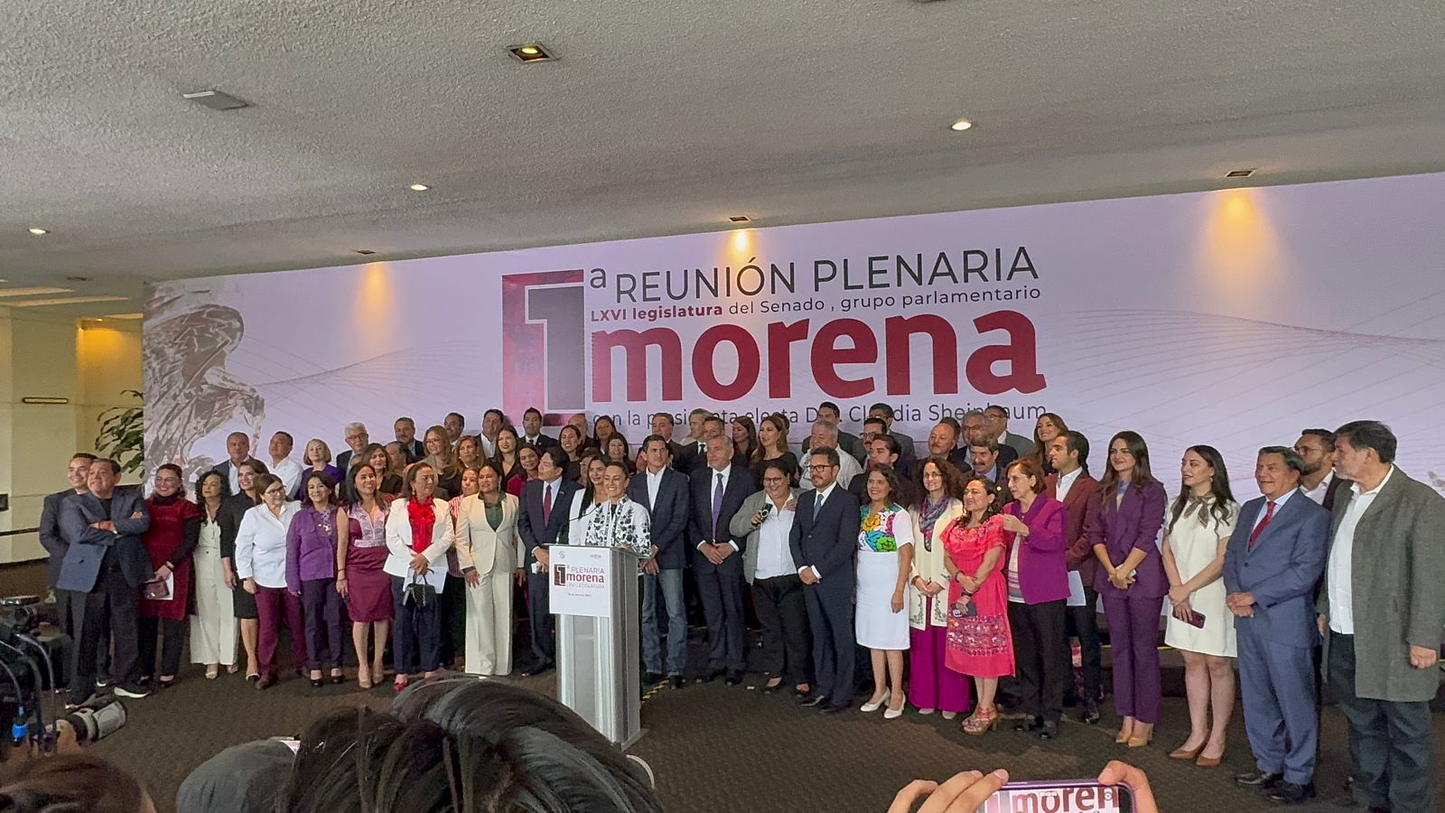 Tras plenaria, Sheinbaum presenta a los 66 senadores de Morena