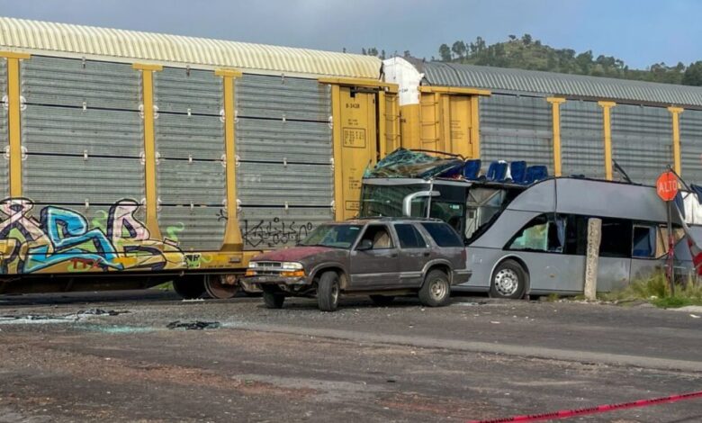 Tren arrolla autobús en Atlacomulco y deja al menos ocho muertos