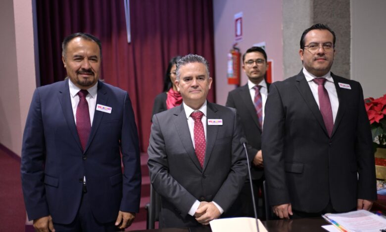 Xalapa, Ver., 19 de noviembre de 2025.- Las diputadas Nallely Mendoza Camarillo, Imelda Garrido Alvarado y Miriam García Guzmán, presidenta, secretaria y vocal respectivamente de la Comisión Permanente de Turismo recibieron la comparecencia del titular de la Secretaría de Turismo (Sectur), Igor Fidel Rojí López, en la glosa del Primer Informe de Gobierno.