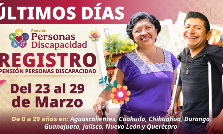 La secretaria de Bienestar, Ariadna Montiel Reyes, informó que el registro para la Pensión para el Bienestar de las Personas con Discapacidad concluye el domingo 29 de marzo, por lo que exhortó a las personas a acudir al módulo más cercano para recibir este derecho consagrado en el artículo 4° de la Constitución mexicana.