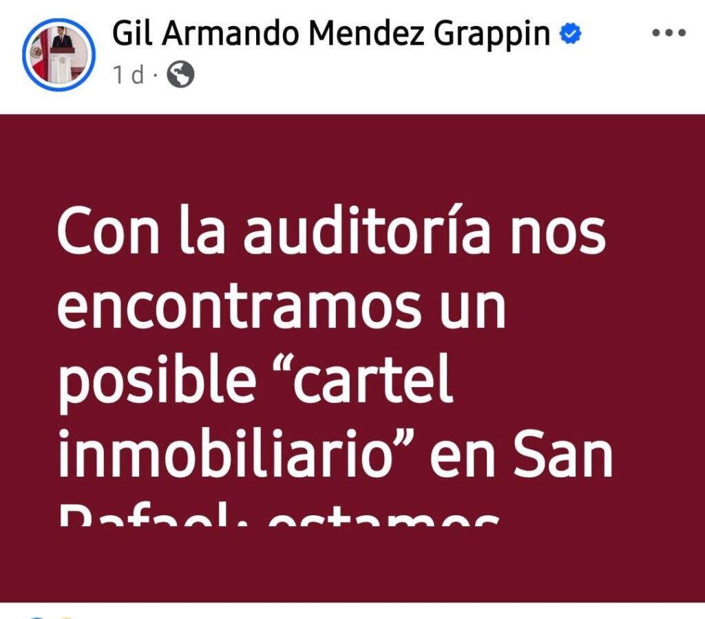 “Con la auditoría nos encontramos un posible ‘cártel inmobiliario’ en San Rafael; estamos pidiendo información al Congreso, la siguiente semana tendremos respuestas y lo haremos público.»