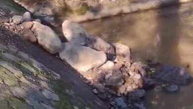 “Una máquina con mango de chango está interviniendo el cauce del río en los terrenos de la cuenca media del Pixquiac, aquí en Tlalnelhuayocan y están los trabajadores de CMAS y pueden ver cómo el agua está suspendida hacia este lado, pero sigue corriendo hacia la cortina para seguir surtiendo a Xalapa”.