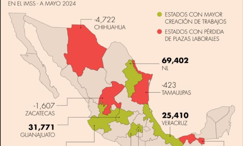 Después de los primeros seis lugares, otras entidades que también generaron más de 10 mil trabajos formales son Coahuila, Quintana Roo, Querétaro, Puebla, Hidalgo, Chiapas, Yucatán y San Luis Potosí, seguidas por las 13 restantes que no lograron la meta.