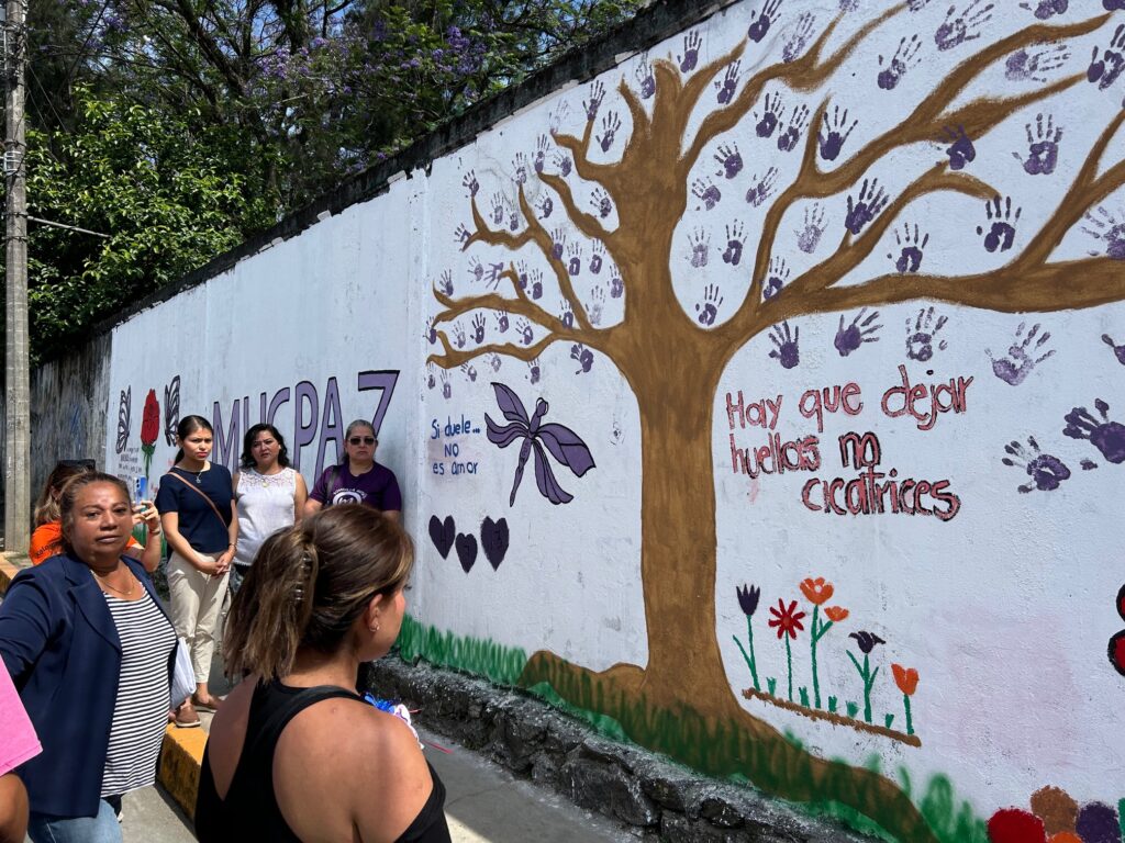 El mural se inició hace 12 días y participaron mujeres de la asociación Mucpaz, así como de personal del Instituto Municipal de la Mujer de Coatepec.